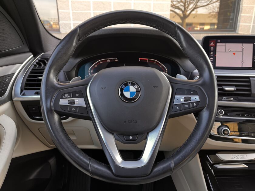 The 2020 BMW X3 xDrive30i impresses with its spirited performance and unmistakable presence on the road. Its responsive turbocharged powertrain and intelligent all wheel drive system create a drive that feels both energetic and effortlessly composed. The interior showcases meticulous craftsmanship, cutting edge infotainment, and a serene atmosphere that elevates every journey. Blending practicality with unmistakable luxury, this SUV delivers a driving experience that is both exhilarating and refined. It also offers Apple Carplay, Android Auto, auto wipers, dual auto climate, backup camera, Bluetooth phone/audio, blind spot monitoring, heads up display, homelink, lane departure warning, navigation, panoramic sunroof, heated front seats, keyless entry, heated steering wheel, parking sensors, and wireless charging!