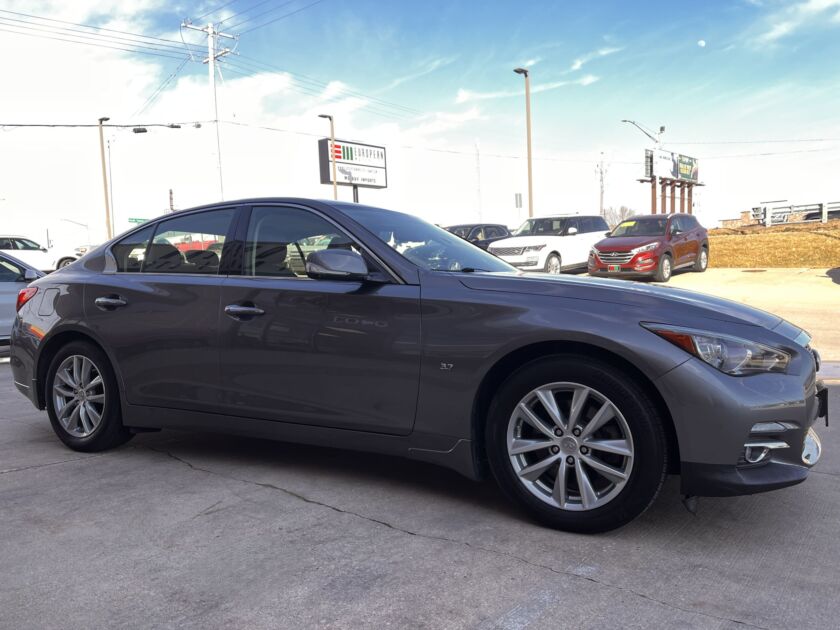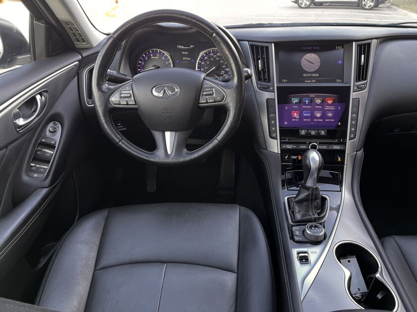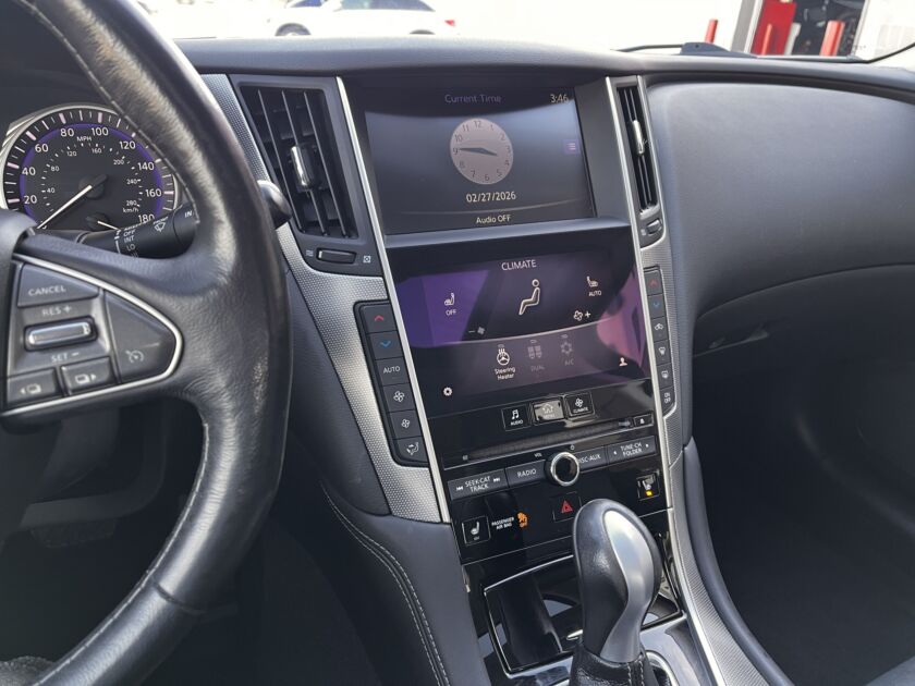 The 2015 INFINITI Q50 Premium exudes a sleek, modern elegance that immediately captures attention with its sculpted lines and bold stance. Its responsive V6 engine delivers smooth yet spirited acceleration, creating a drive that feels both refined and engaging. Inside, the cabin surrounds you with upscale materials, intuitive dual touchscreen technology, and a quiet, composed atmosphere. With its harmonious blend of luxury, performance, and innovative design, the Q50 Premium offers a truly rewarding driving experience. It also features dual auto climate, backup camera, homelink, sunroof, Bluetooth phone/audio, cruise control, heated front seats, keyless entry, and heated steering wheel!