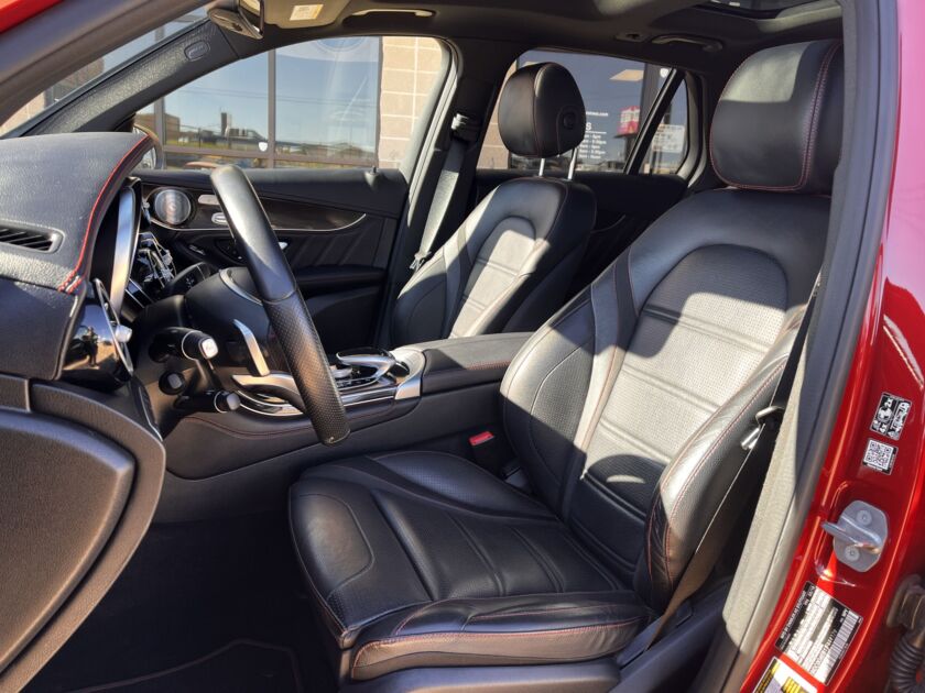 The 2018 Mercedes-Benz GLC 43 AMG is a masterful blend of luxury, performance, and sophistication. Its twin turbocharged V6 engine delivers exhilarating power with seamless precision, while the AMG tuned suspension ensures a poised and confident ride. Inside, the cabin exudes refinement, wrapped in premium materials and cutting edge technology that elevate every journey. Stylish, dynamic, and unmistakably Mercedes, the GLC 43 AMG stands as a perfect harmony of comfort and athleticism. It also offers Dual Auto Climate, 360 Backup Camera, Homelink, Lane Departure Warning, Navigation, Power Memory Seats, Dual Sunroof, Bluetooth Phone/Audio, Adaptive Cruise Control, Heated & Cooled Leather Seats, Keyless Entry, Pilot Assist, Air Suspension, Blind Spot Monitoring, and Burmeister Speakers!